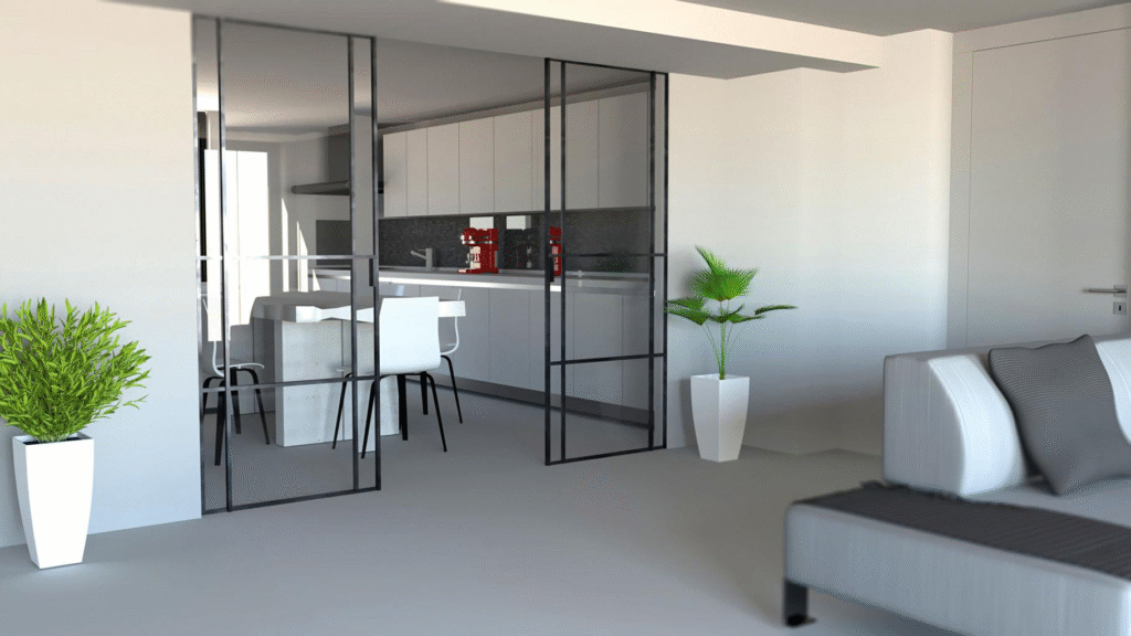 • Sliding walls or partitions that allow rooms to expand or divide