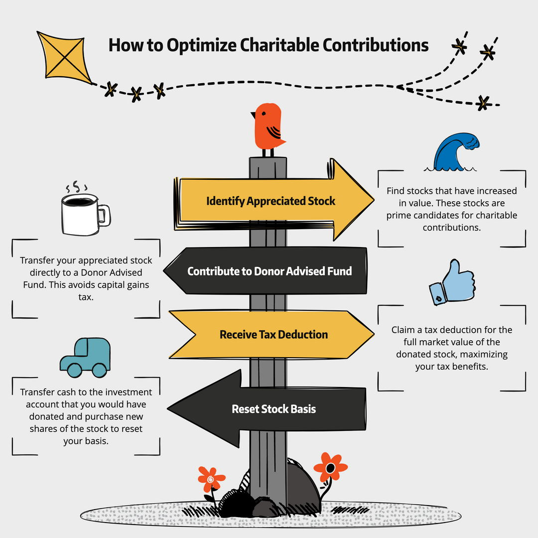 - Donating appreciated assets may reduce taxable gains